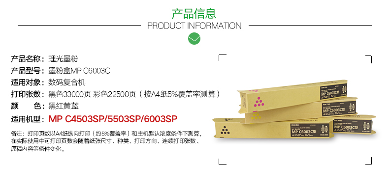 理光墨粉 MPC6003C 黑色 適用MP C4503SP/5503SP/6003SP 單位:支