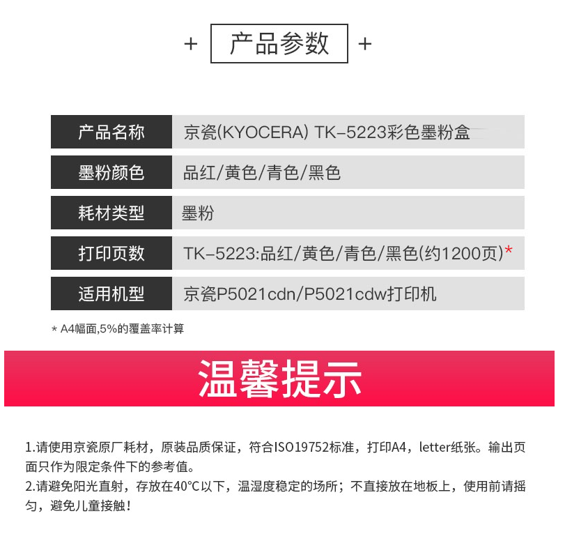 京瓷墨粉 TK-5223 黑色墨粉 適用:P5021cdn/P5021cdw 單位:支