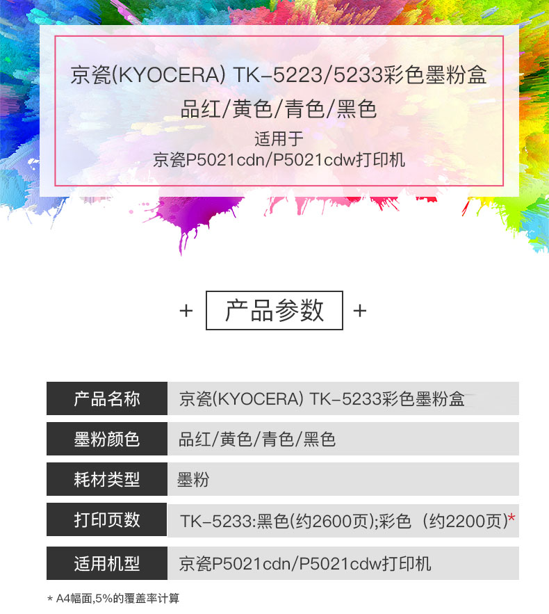 京瓷墨粉 TK-5233 紅色墨粉 適用:京瓷P5021cdn/P5021cdw打印機(jī) 單位:支