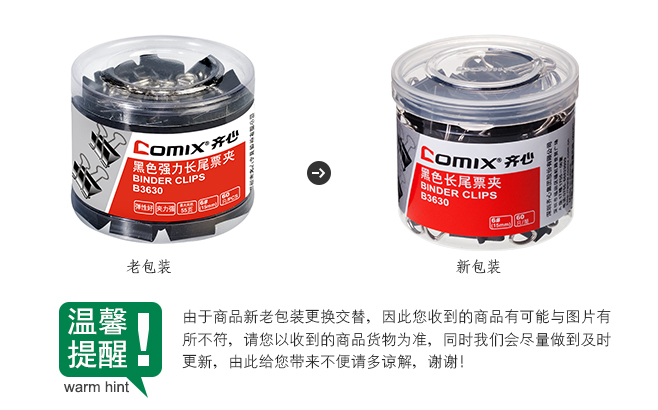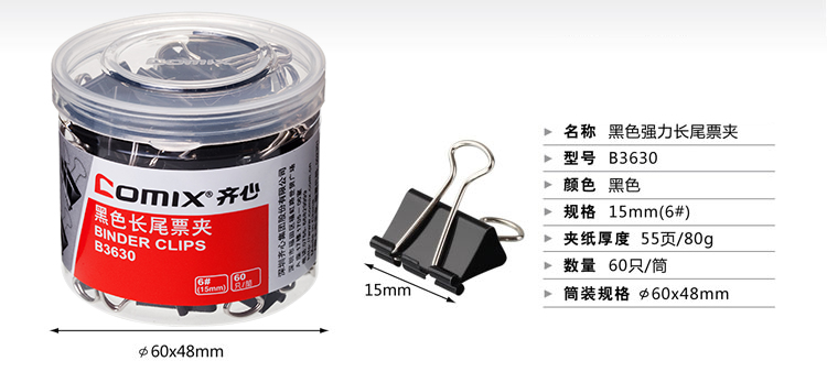 齊心(Comix) B3630黑色長(zhǎng)尾夾 單位:筒