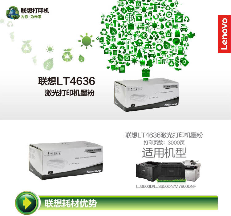 聯想粉盒 LT4636 黑色 適用LJ3600D/LJ3650DN/M7900DNF打印機 單位:支