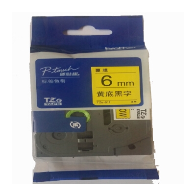 兄弟色帶 TZE-611 6mm標簽強粘色帶黃底黑字 單位:支