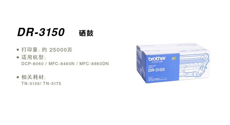 兄弟硒鼓 DR-3150 黑色硒鼓 適用:HL-5240/HL-5250DN/MFC-8460N/MFC-8860DN/DCP-8060 單位:支