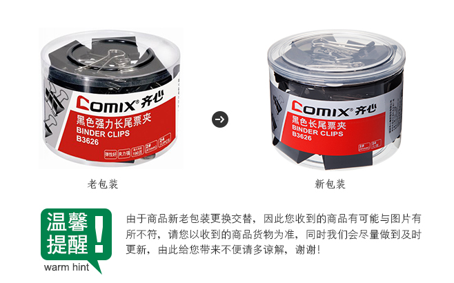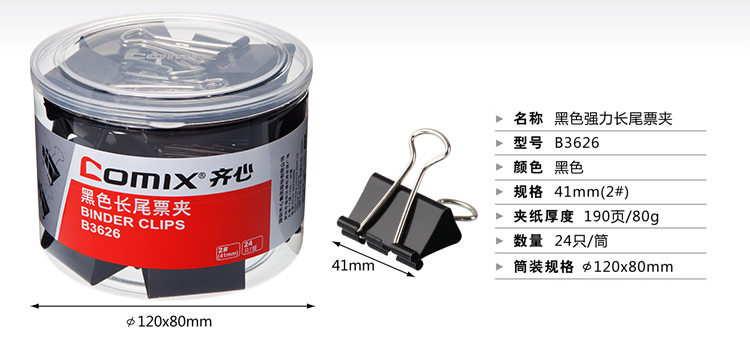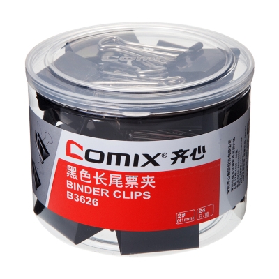 齊心(Comix) B3626 黑色長尾夾 單位:筒