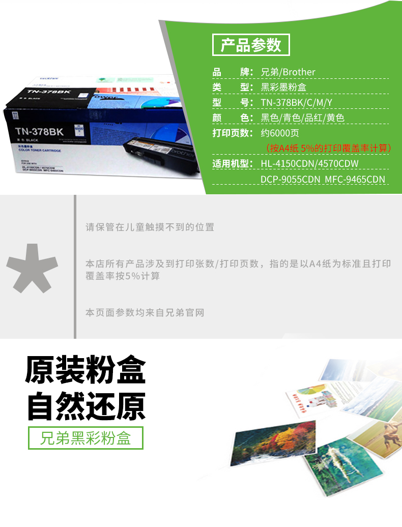 兄弟墨粉 TN-378BK 黑色粉盒 適用:HL4150CDN 4570CDW DCP9055 MFC9465 單位:支