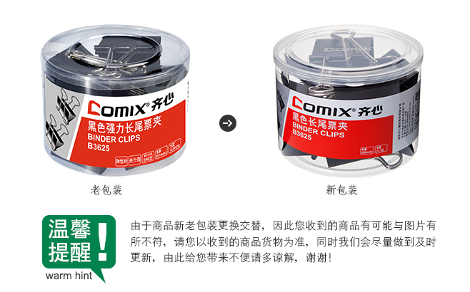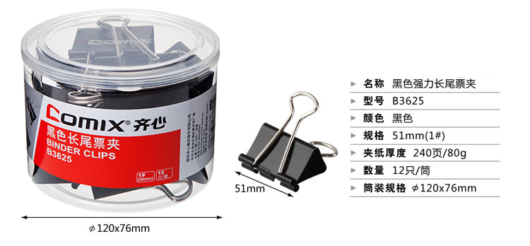 齊心(Comix) B3625黑色長尾夾 單位:筒