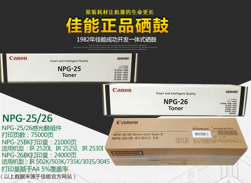 佳能墨粉 NPG-26 黑色墨粉 適用:IR 502K/503K/735K//3035/3045 單位:支