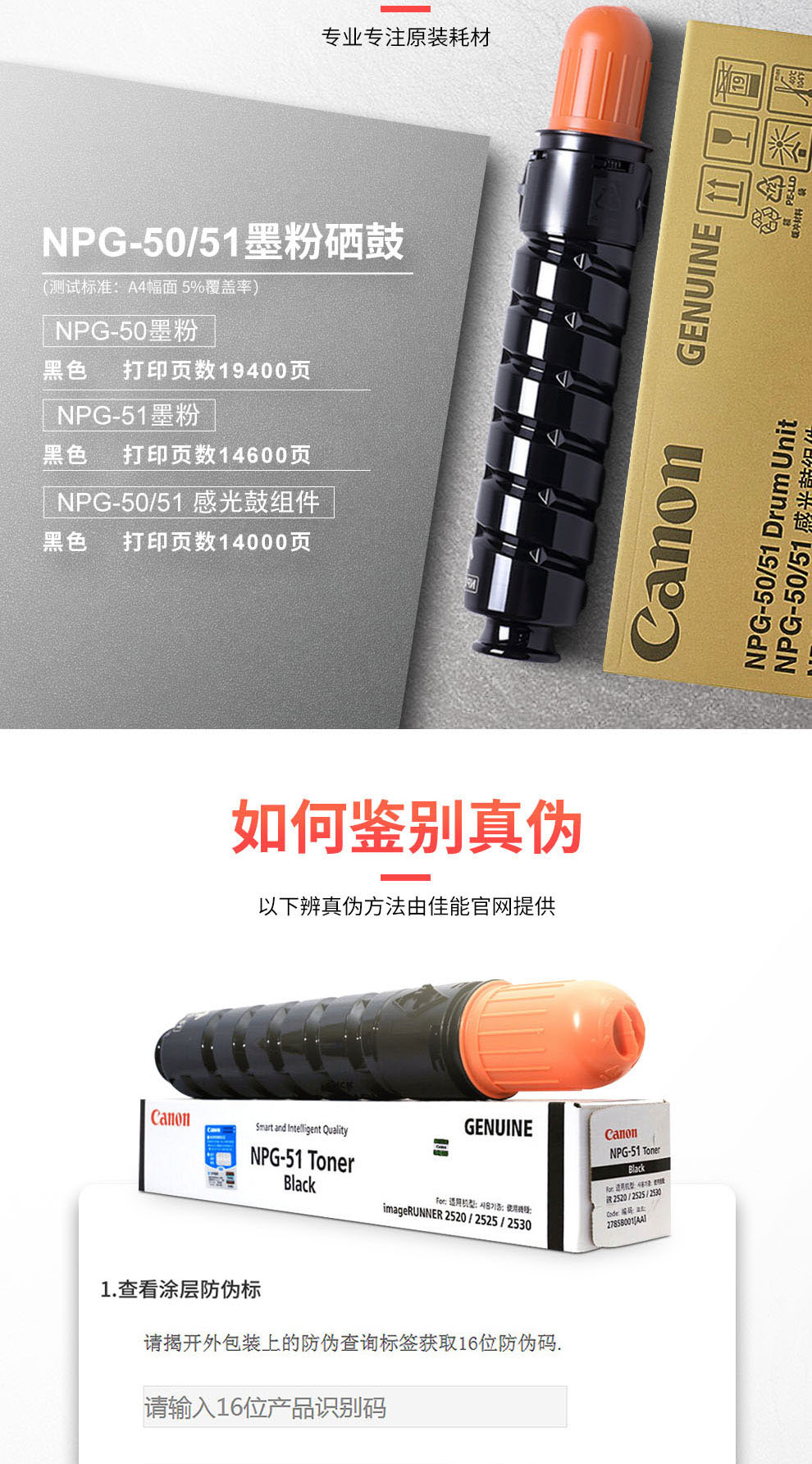 佳能墨粉 NPG-50/51 黑色墨粉 適用:IR2520i/2525i/2530i 單位:支
