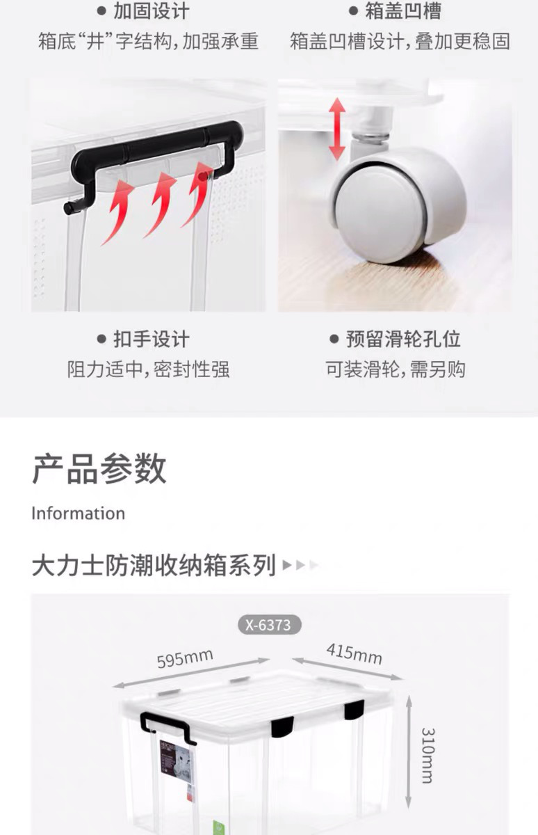 禧天龍收納箱X-6170 有蓋收納箱加厚塑料透明 68L 單位:個(gè)