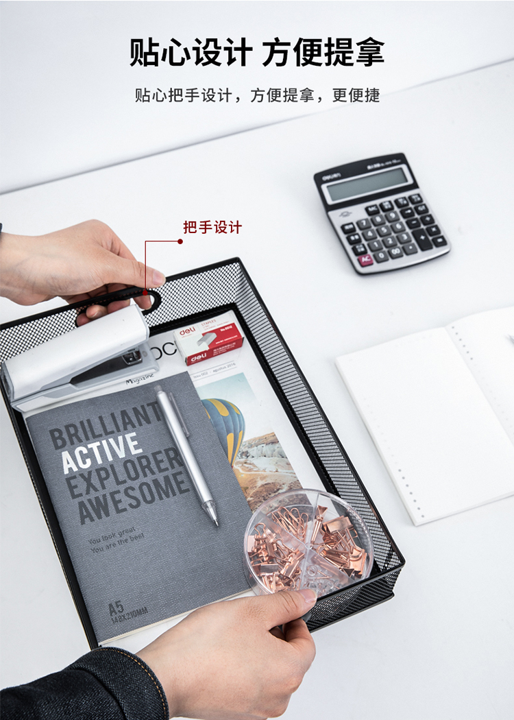 得力文件籃 79080 金屬方形鏤空網(wǎng)材文件收納框/收納籃 黑色 單位:個