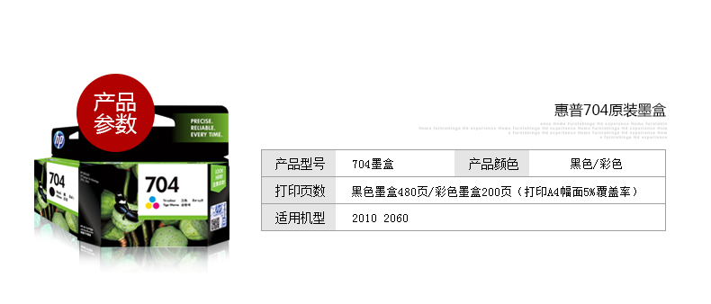 惠普墨盒 704 黑色墨盒 適用:Deskjet 2010 2060 單位:支