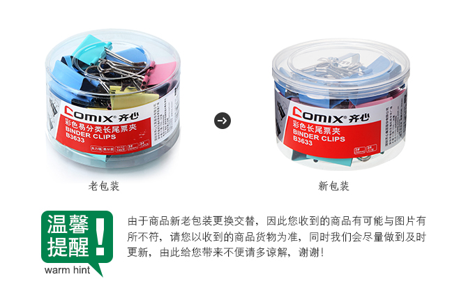 齊心(Comix) B3633 彩色長(zhǎng)尾夾 單位:筒