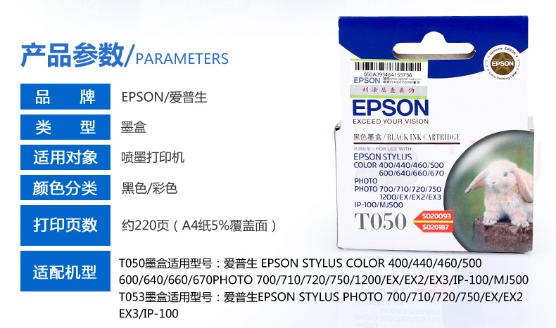 愛普生墨盒 T050 黑色墨盒 適用700 710 720 750 EX EX2 EX3 單位:支