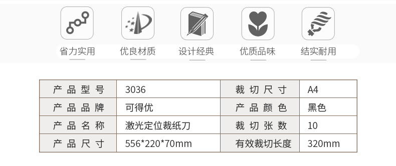可得優(yōu)切紙機 3036 A4切紙刀紅外線輔助定位 單位:臺