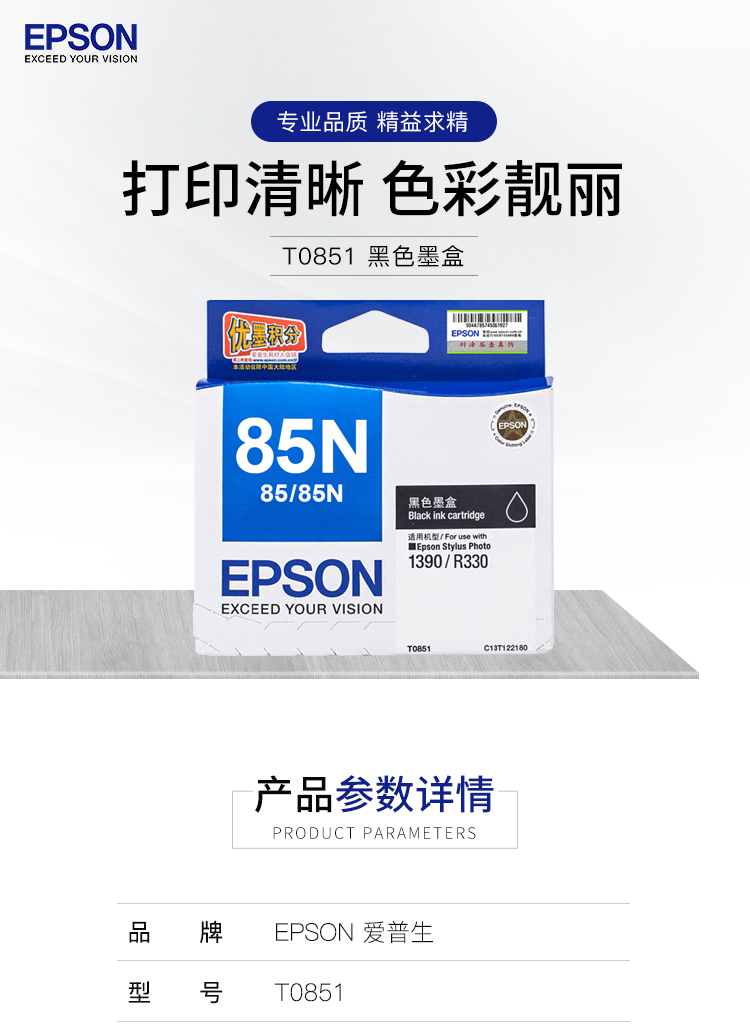 愛(ài)普生墨盒T0851 黑色墨盒 適用:PHOTO 1390 R330 單位:支