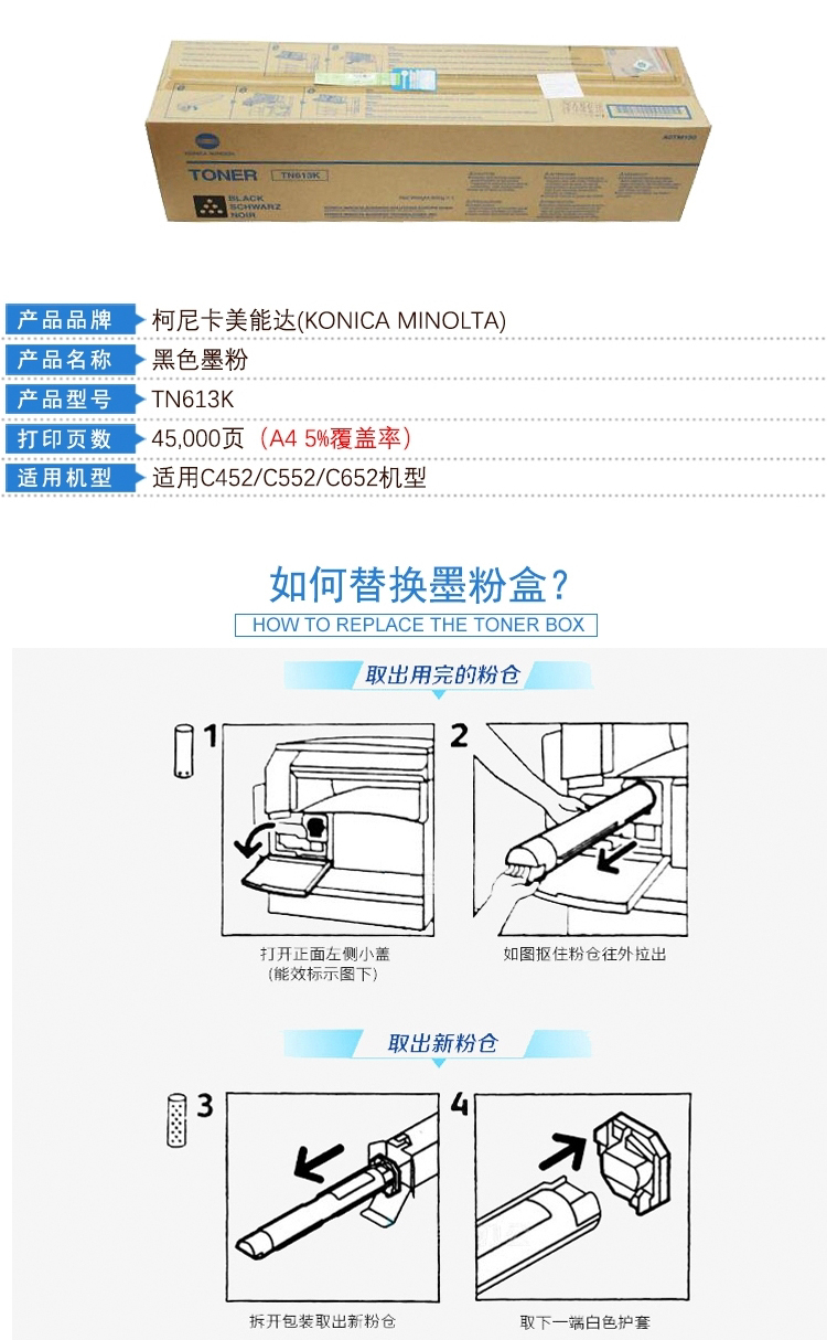 柯柯尼卡美能達(dá) TN613K 黑色墨粉 適用C452/C552/C652 單位:支