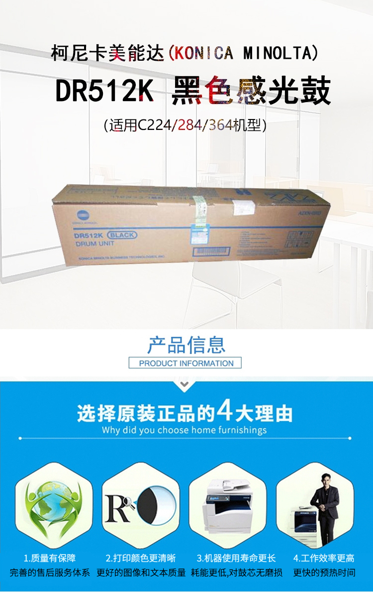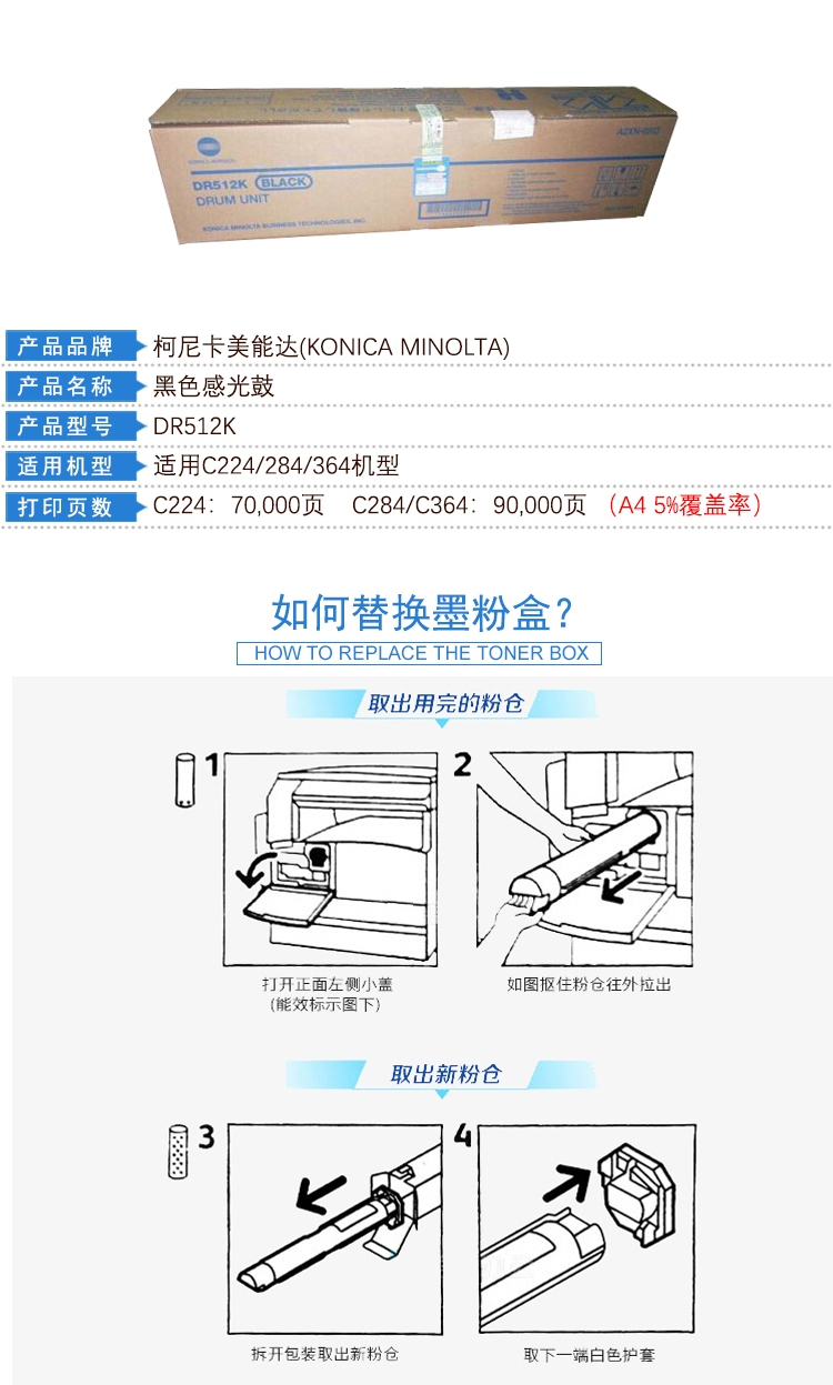 柯尼卡美能達(dá) DR512K 黑色感光鼓 適用C221/C224/C281/C284/C454/C554等機(jī)型 單位:支