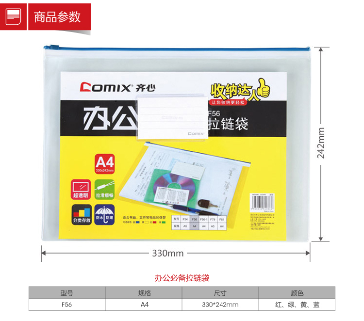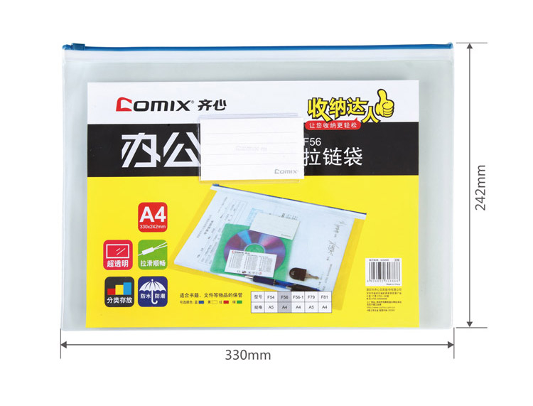 商品名稱:齊心 F56 辦公必備拉鏈袋 A4  基本單位:10個/袋