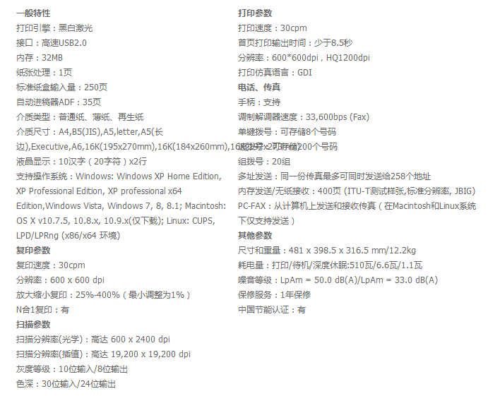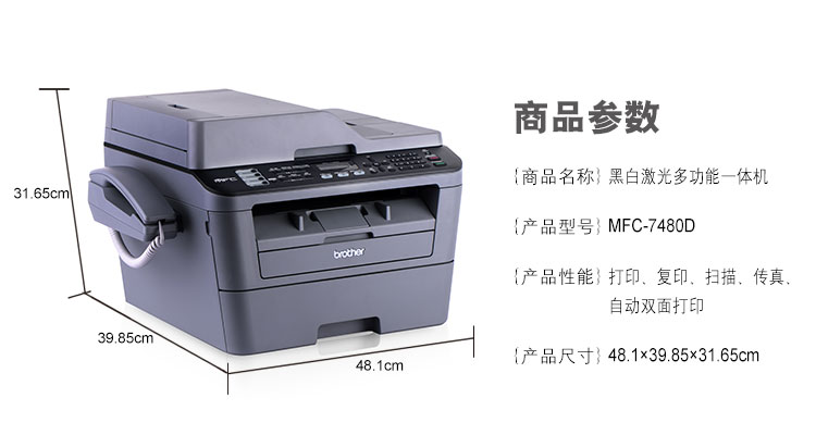 兄弟多功能一體機(jī) MFC-7480D 黑白激光 單位:臺