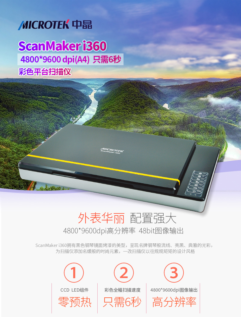 中晶掃描儀 i360 中晶平板式A4輕薄高速掃描儀 單位:臺(tái)
