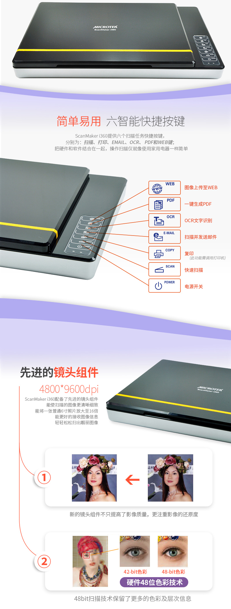 快速便捷,可加快預(yù)熱 CCD 4800*dpi A4 6秒彩色 標(biāo)準(zhǔn)TWAIN 色彩恢復(fù)技術(shù)