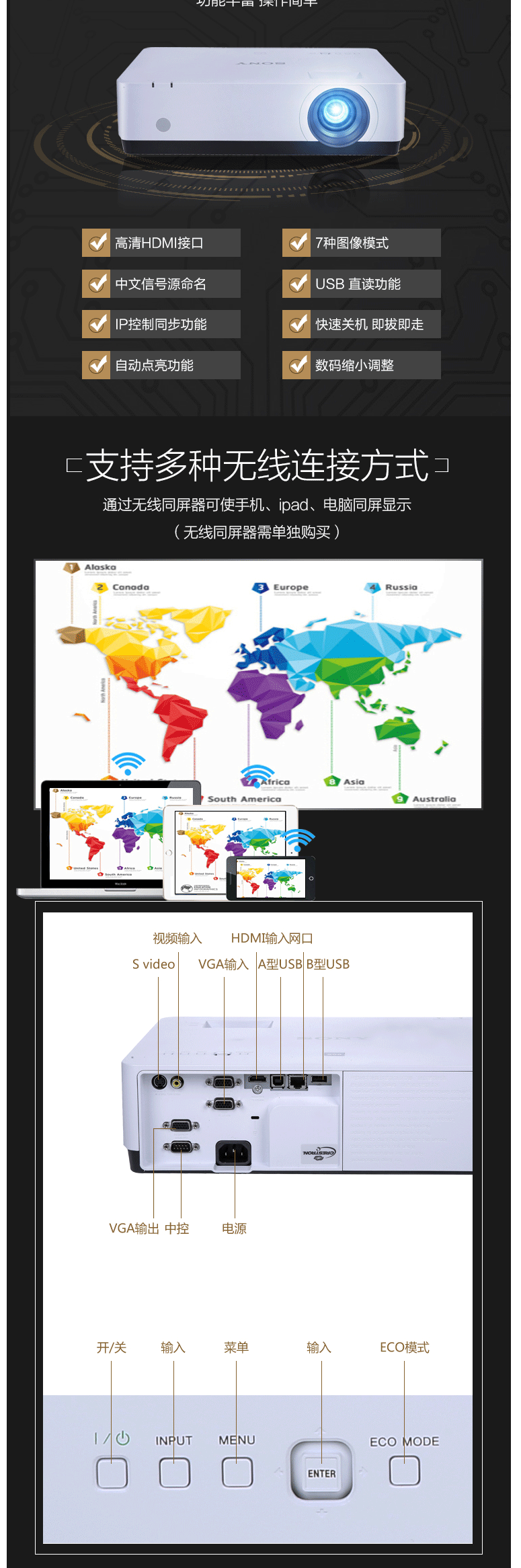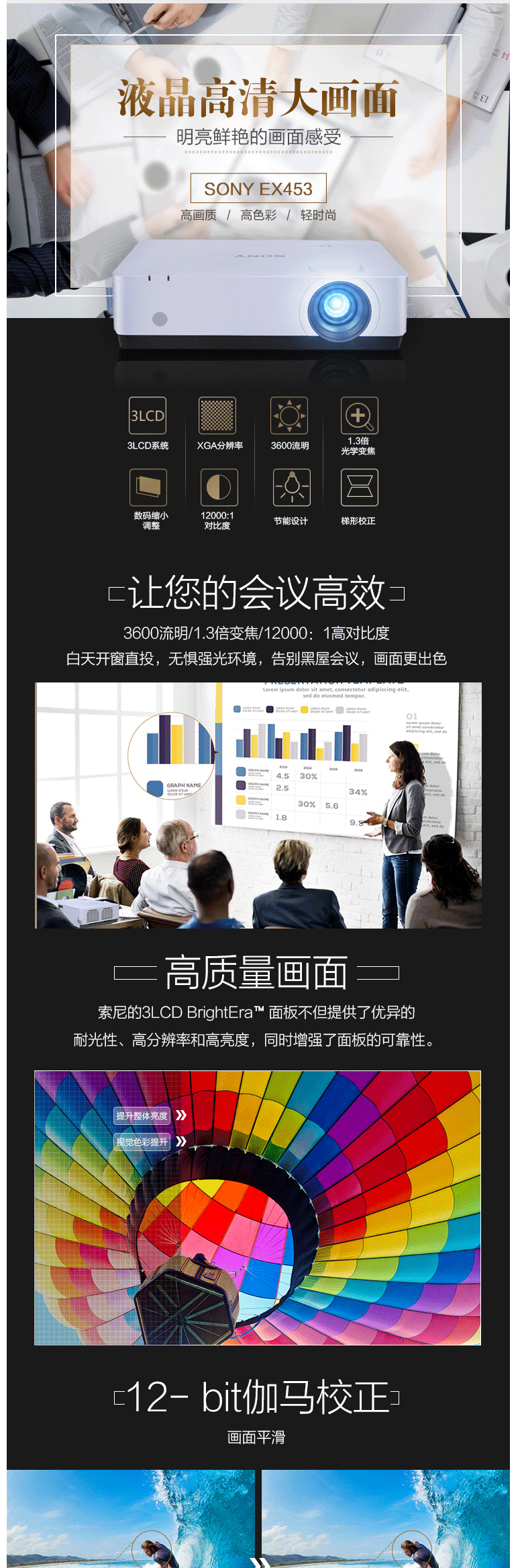 索尼投影儀 VPL-EX453 (標清XGA 3600流明 HDMI高清接口) 單位:臺