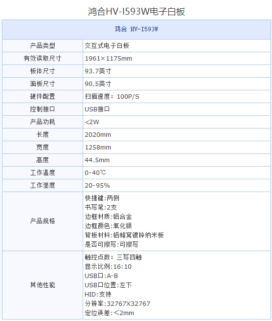鴻合 HV-I593W 電子白板 單位:臺