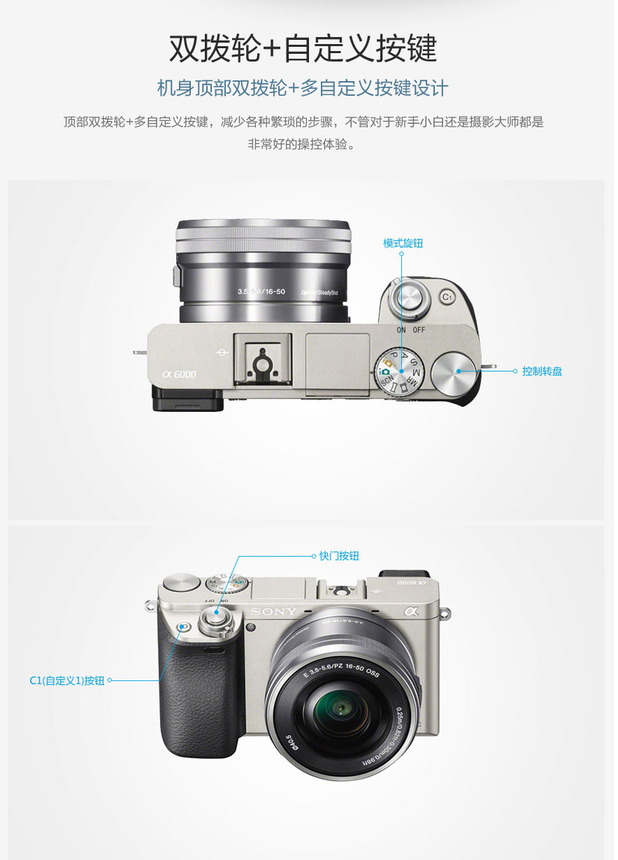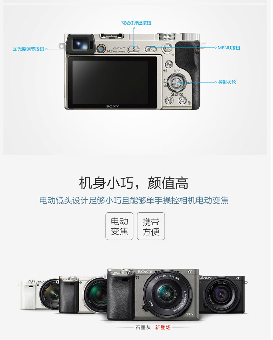 16-50MM鏡頭A6000L/Α6000 約2430萬(wàn)有效像素APS-C單鏡頭微單相機(jī)石墨灰