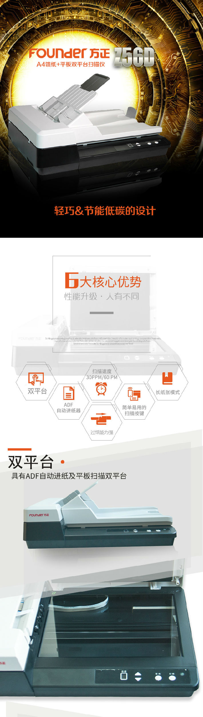方正掃描儀 Z56D A4彩色高速雙面自動進紙文掃描儀 單位:臺