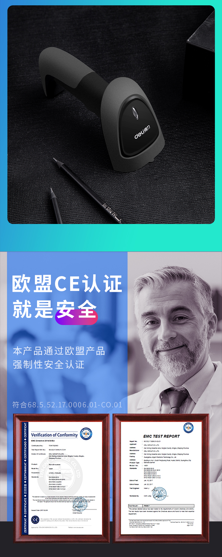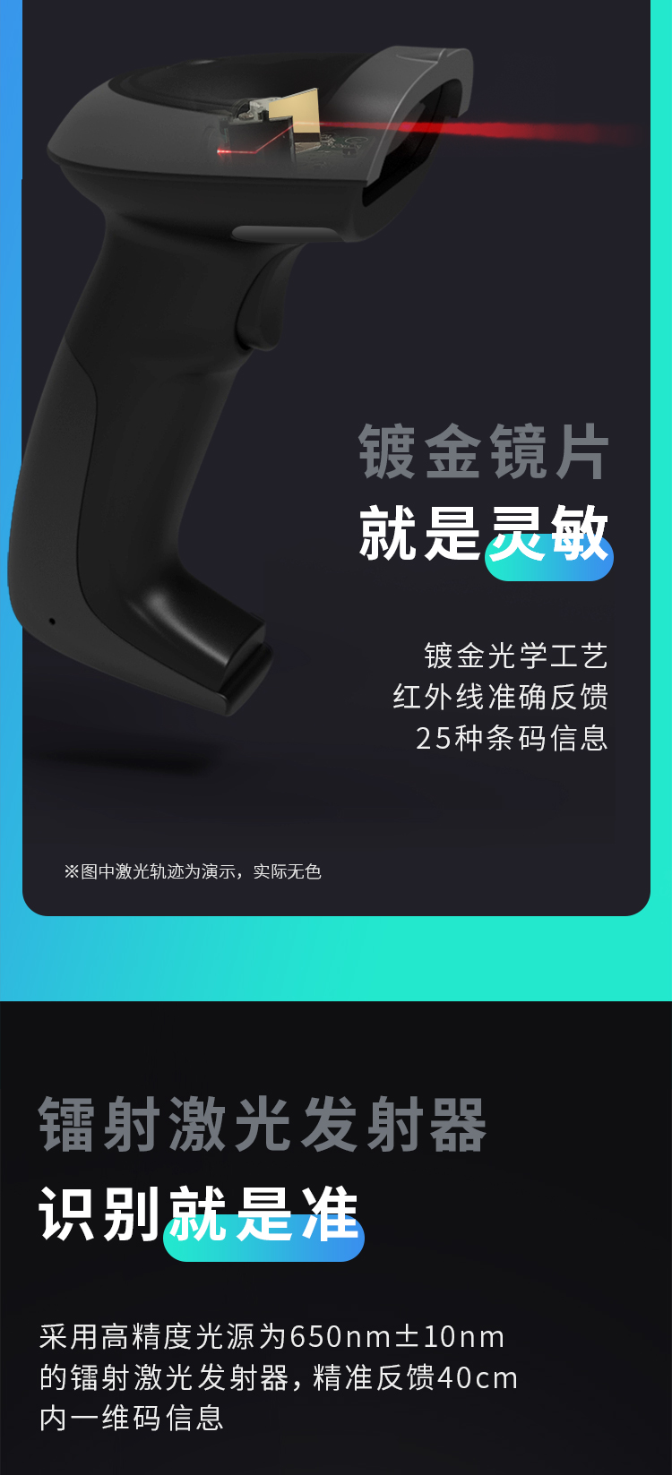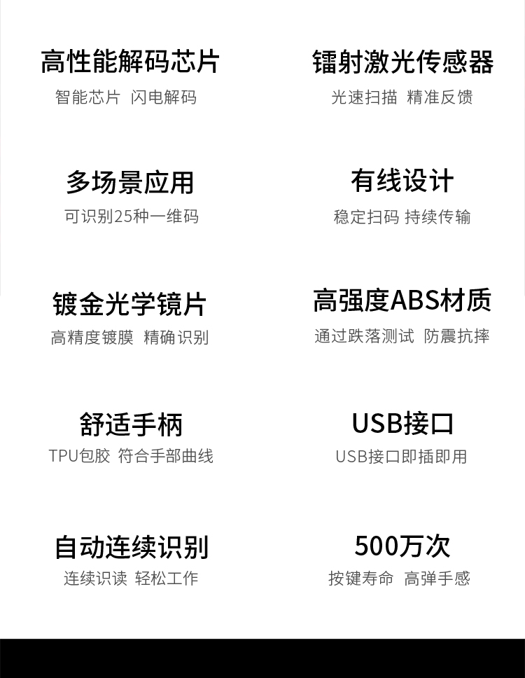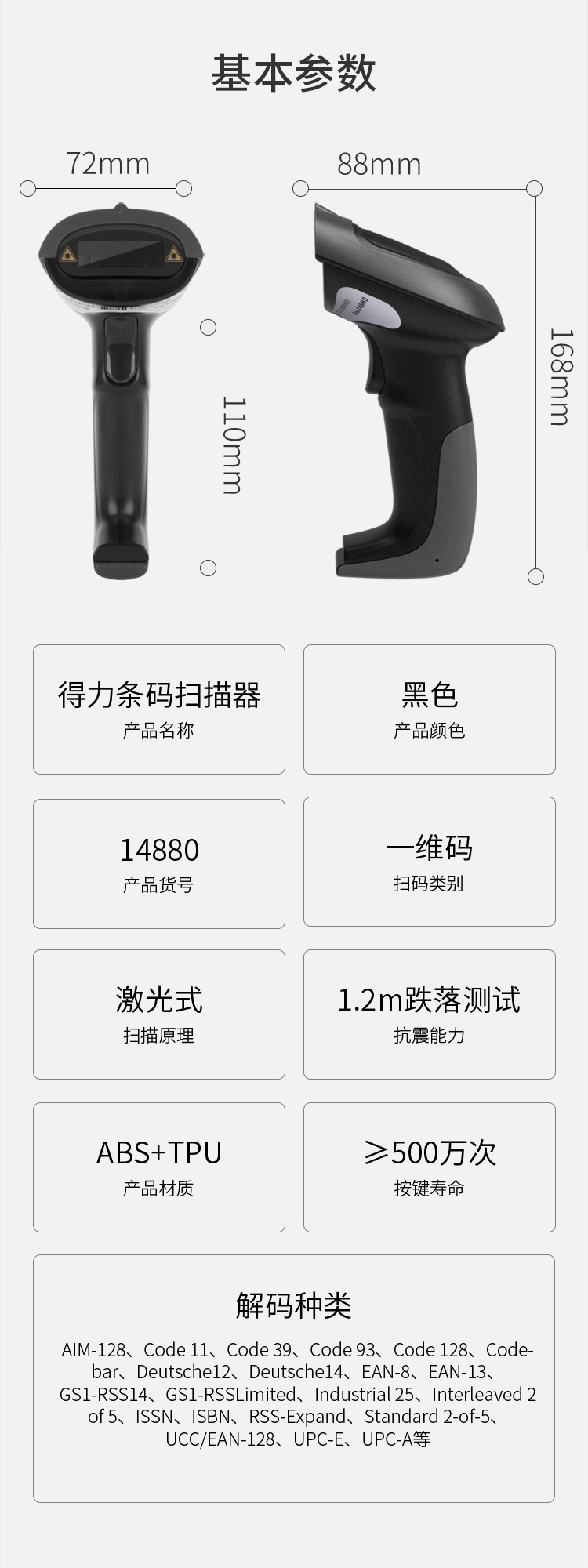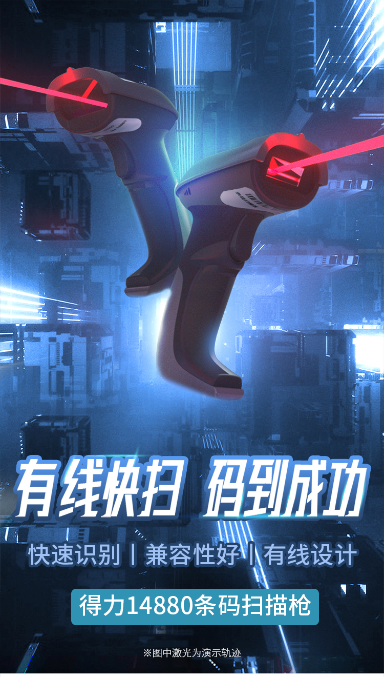 得力掃描槍 14880黑 一維碼掃描槍掃碼槍商品條碼槍 單位:個(gè)