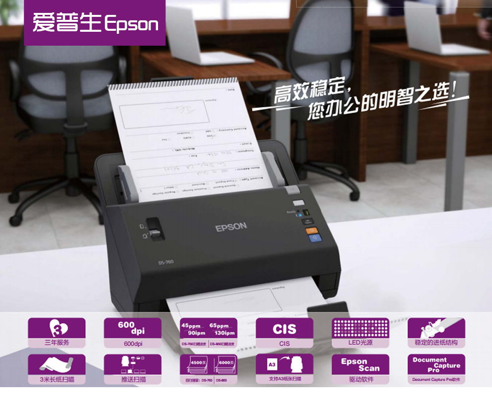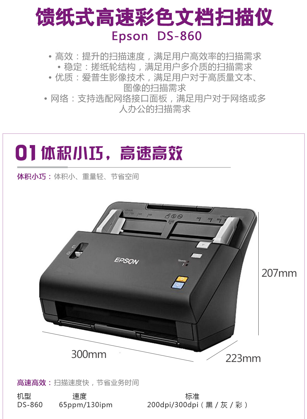 愛普生掃描儀 DS-860 高速饋紙式A4彩色文檔自動(dòng)連續(xù)雙面掃描儀 單位:臺(tái)