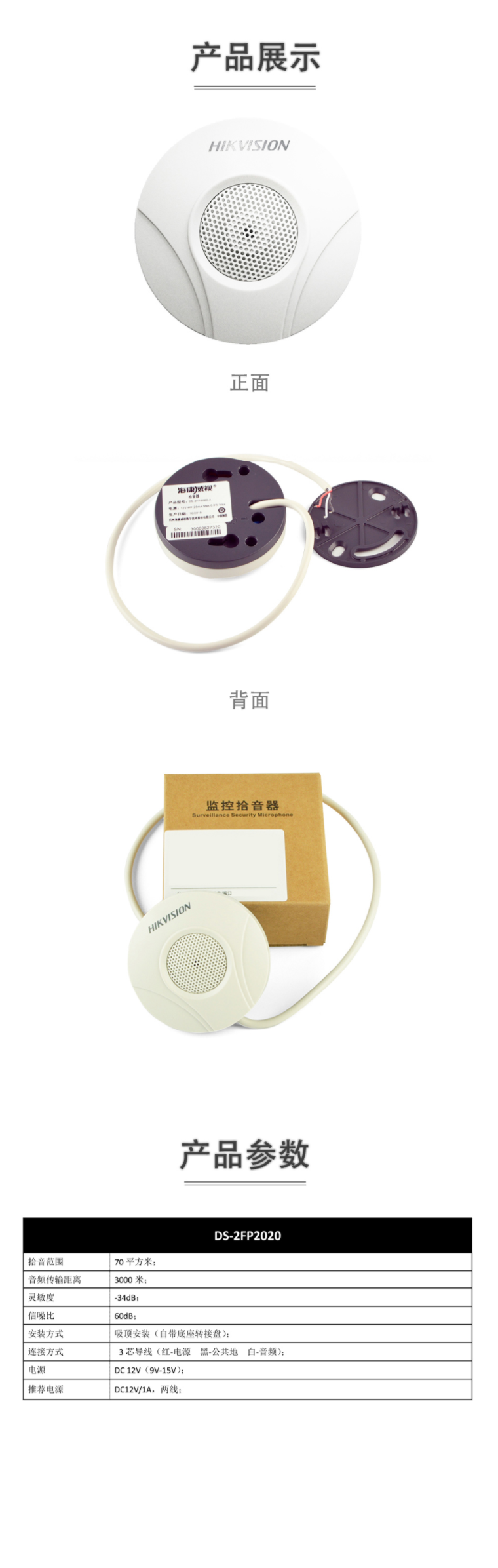 ??低暿耙羝?DS-2FP2020 監(jiān)控音頻采集設(shè)備(不含電源)單位:個