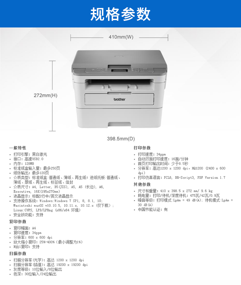 兄弟多功能一體機(jī) DCP-B7500D 黑白激光 單位:臺(tái)