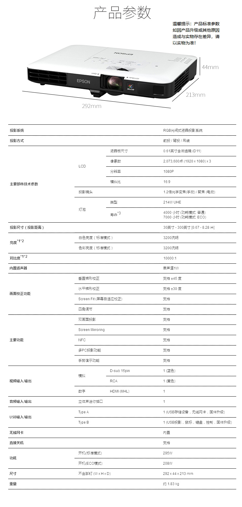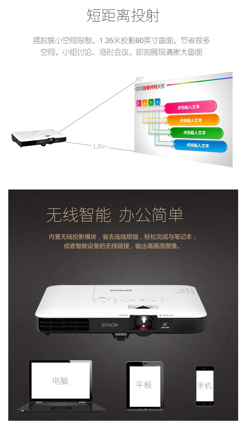 愛普生投影機(jī) CB-1795F 商務(wù)會(huì)議教育便攜1080p高清 無線投影儀單位:臺(tái)