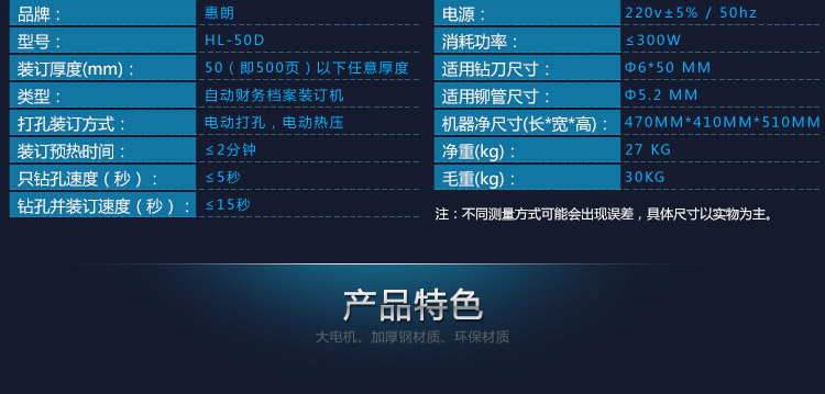 惠朗裝訂機(jī) 自動財務(wù)檔案HL-50D裝訂機(jī) 單位:臺