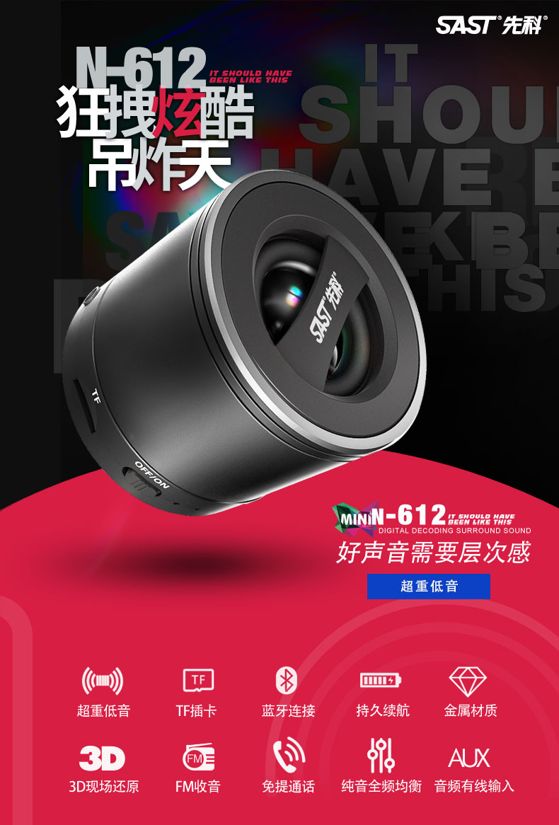 先科(SAST) N-612 無線藍牙音箱 迷你小音響