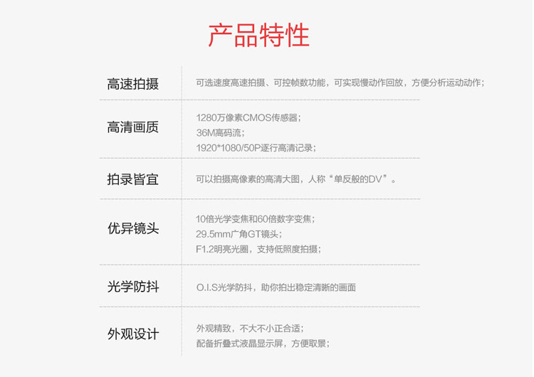 高速攝錄一體機 1200萬像素 F1.2超大光圈 高達36MBPS碼流 3種高清格式