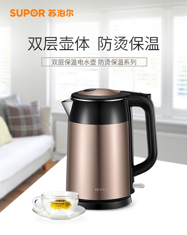 蘇泊爾熱水壺 SWF17S26A 雙層保溫不銹鋼電水壺 1.7L 單位:個