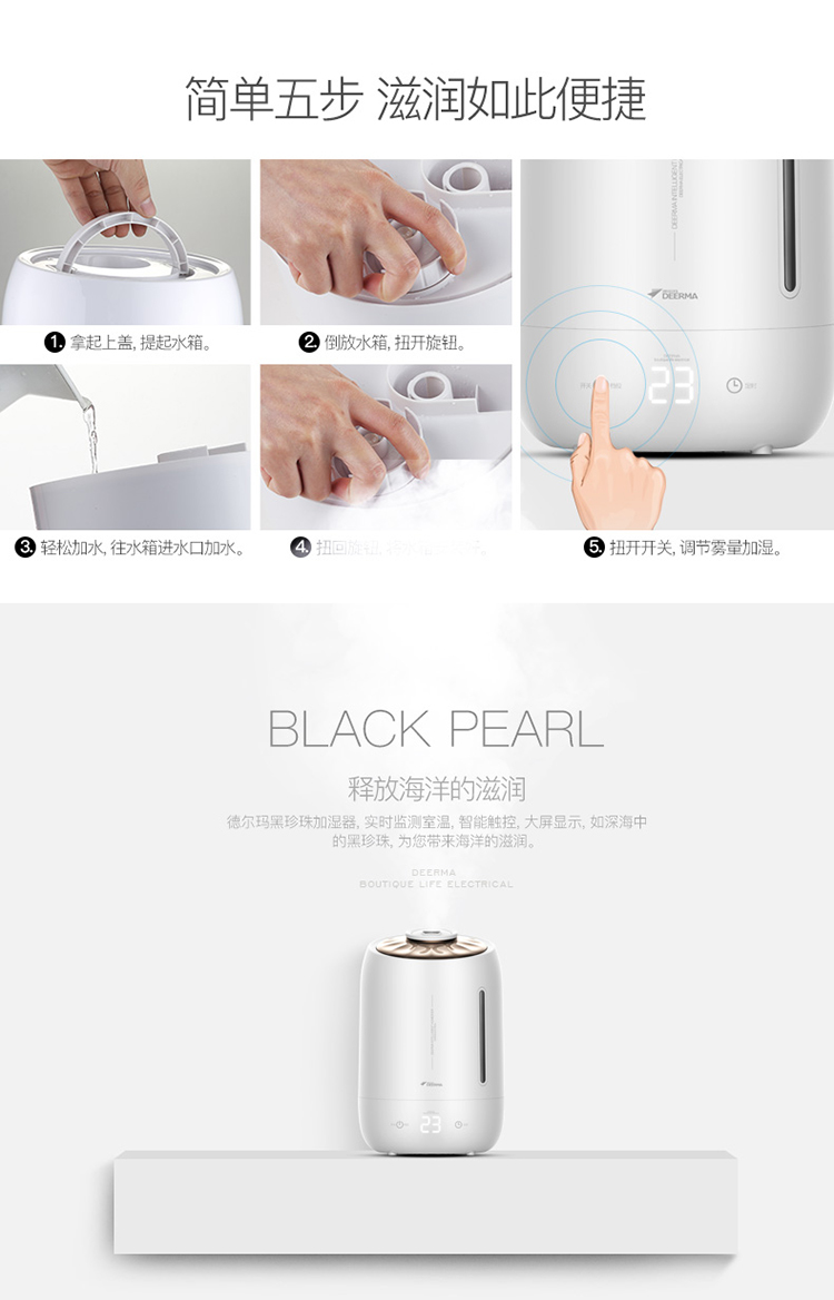 5L大容量 觸控感溫 家用靜音迷你辦公室臥室香薰加濕 DEM-F600(珍珠白)