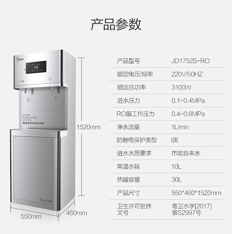 美的 JD1752S-RO(R40) 直飲水機凈水器一體機 單位:臺