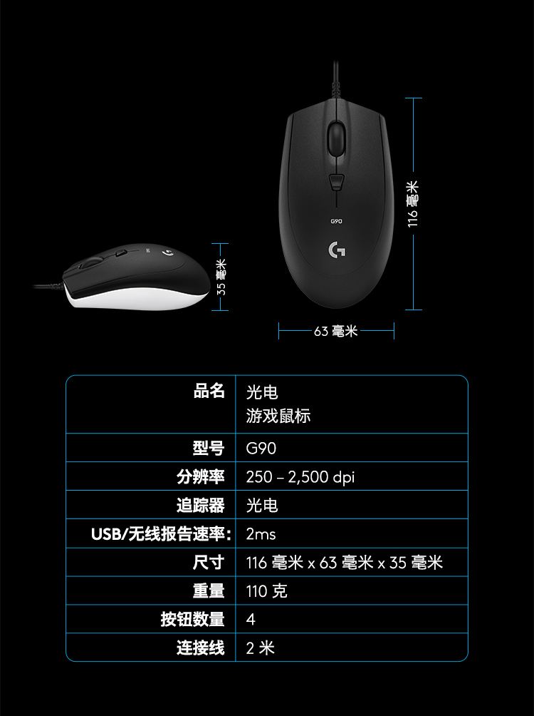 羅技鼠標(biāo) G90 Optical 光電游戲鼠標(biāo) (黑色) 單位:個(gè)