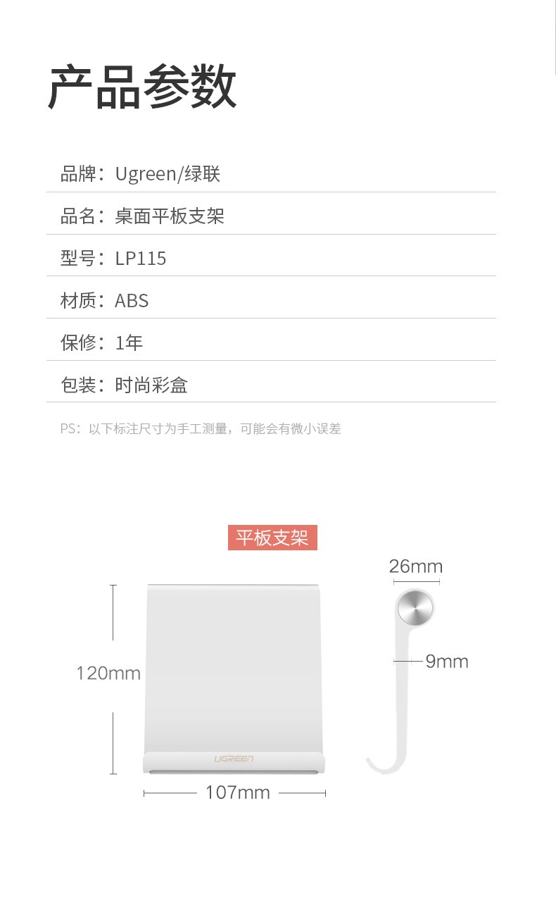 綠聯 LP115 手機桌面支架 平板電腦便攜多功能支架 白色 單位:個
