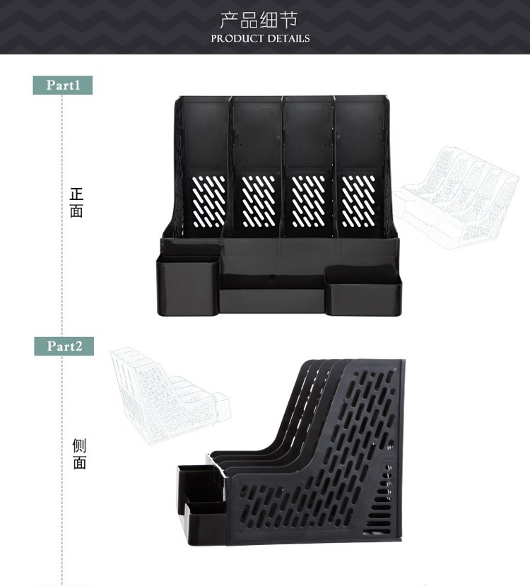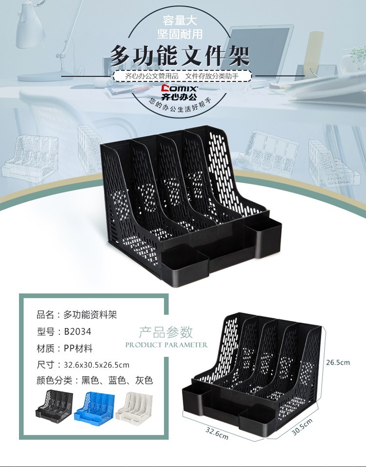 齊心資料架 B2034 加厚帶筆筒 四聯(lián)文件架 灰色 單位:個(gè)