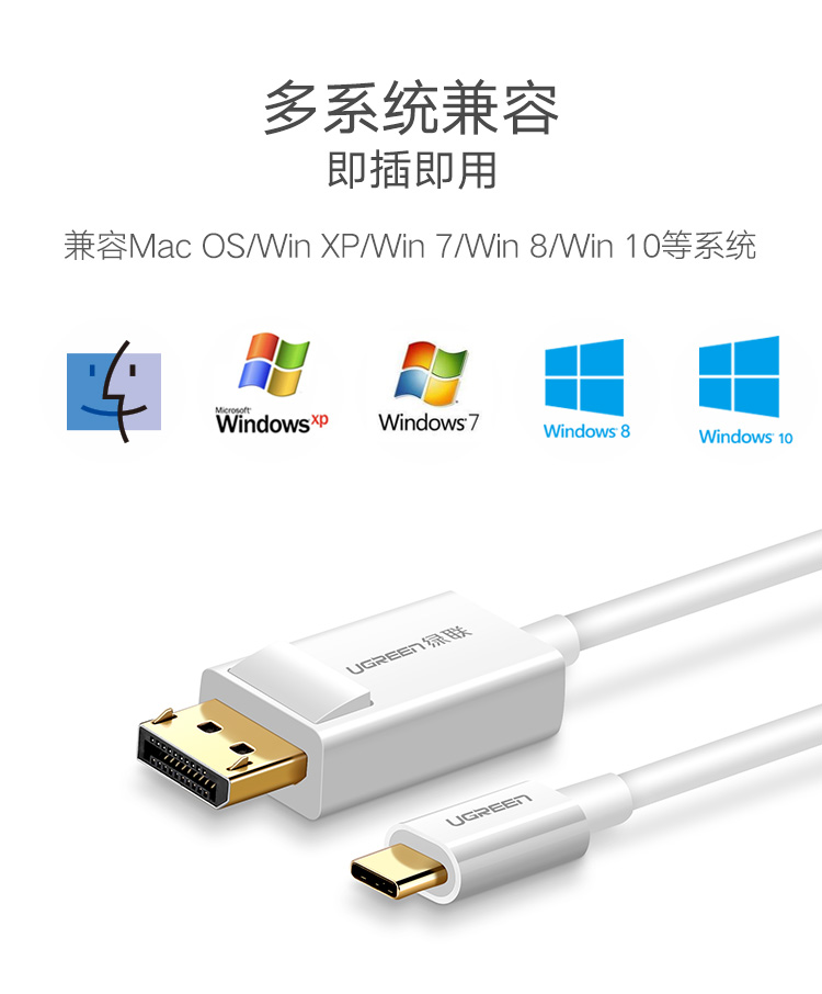綠聯(lián) MM139 擴(kuò)展塢 通用蘋果華為P30設(shè)備 USB-C轉(zhuǎn)DP轉(zhuǎn)換器 高清4K視頻傳輸 1.5米 黑色 單個(gè)裝