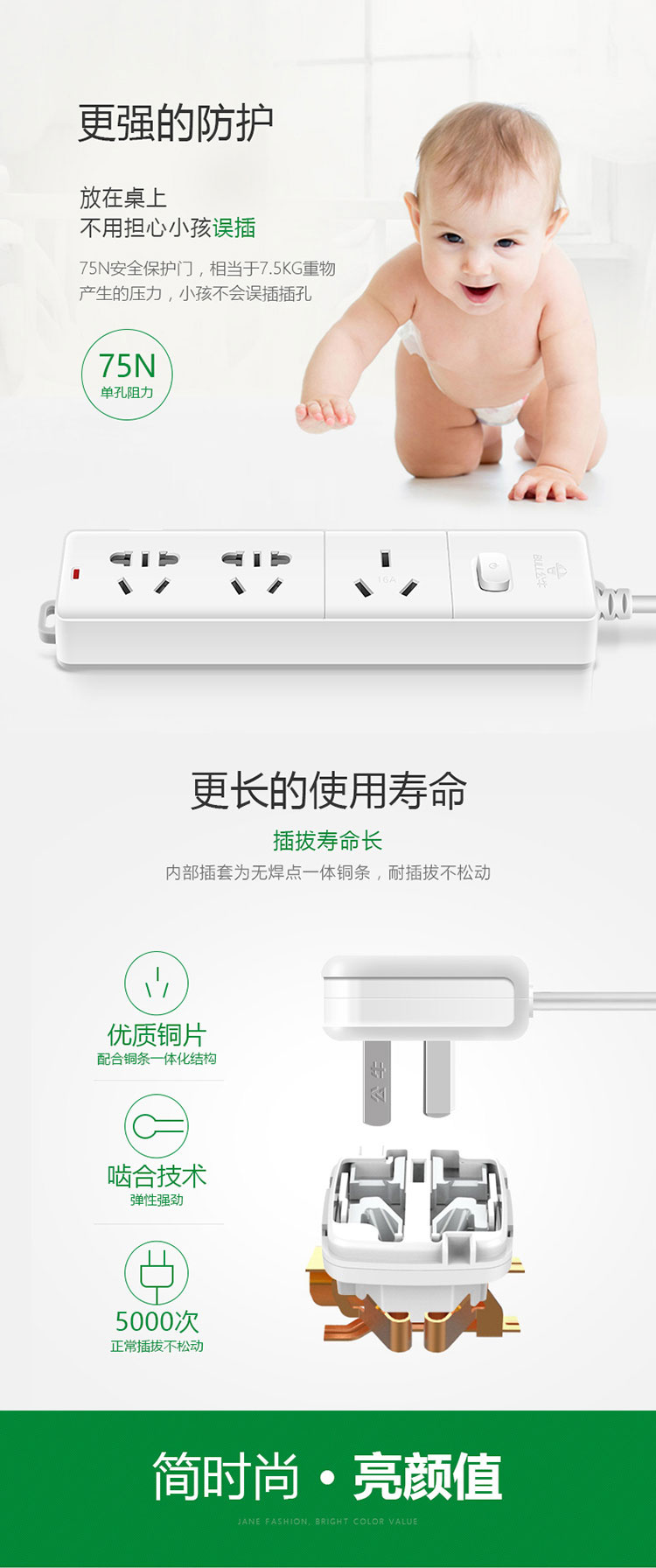 公牛插座 GN-406D 插座接線板大功率16A空調(diào)專用3孔 3位 3米單位:個(gè)
