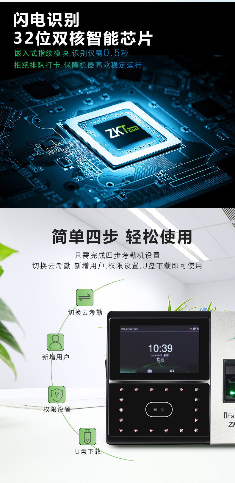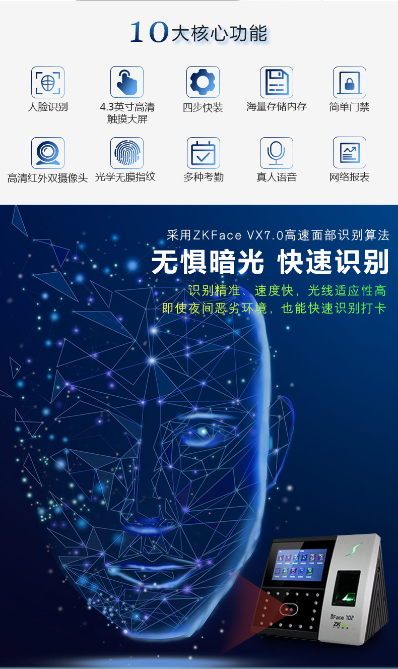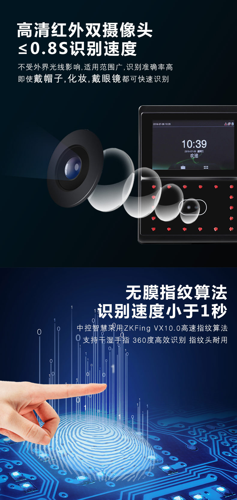 中控智慧考勤機(jī) iFace702 人臉指紋考勤機(jī) 觸屏操控門(mén)禁一體機(jī) 單位:臺(tái)