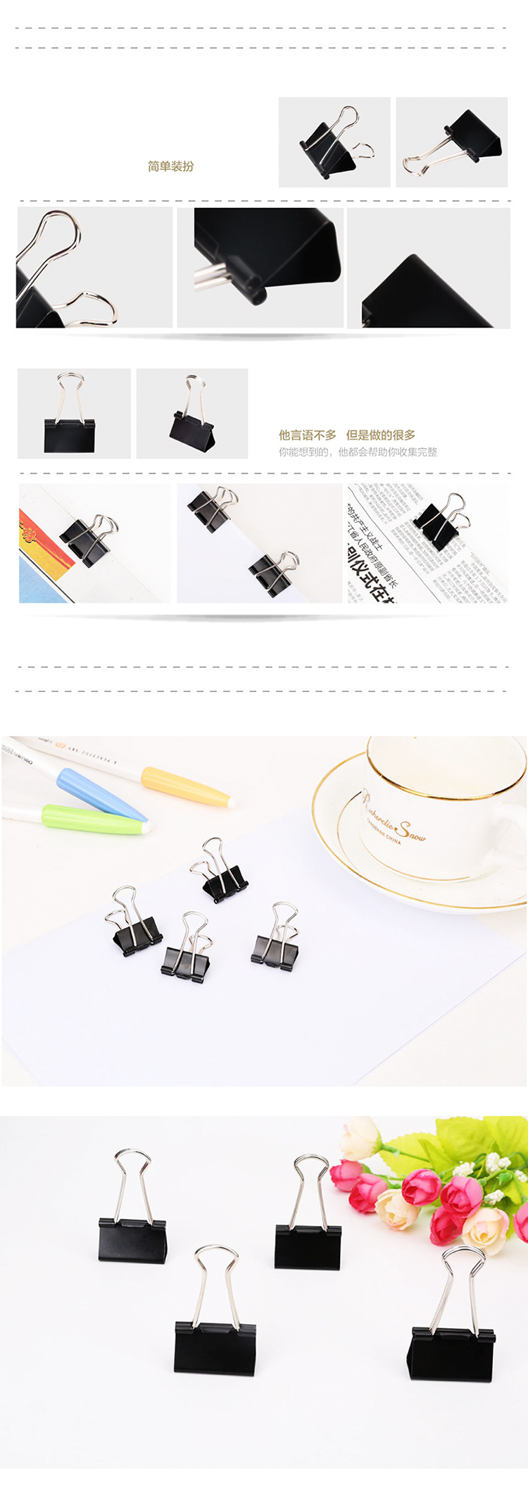19mm黑色長尾夾票夾 金屬燕尾夾票據(jù)夾子 辦公用品 40只/筒