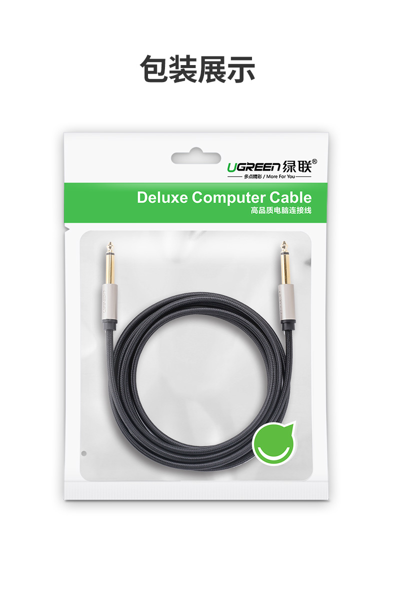 綠聯(lián) AV128 6.5mm音頻線6.35大二芯公對公連接線線 棉網(wǎng)編織 1.5米 黑色 單位:根