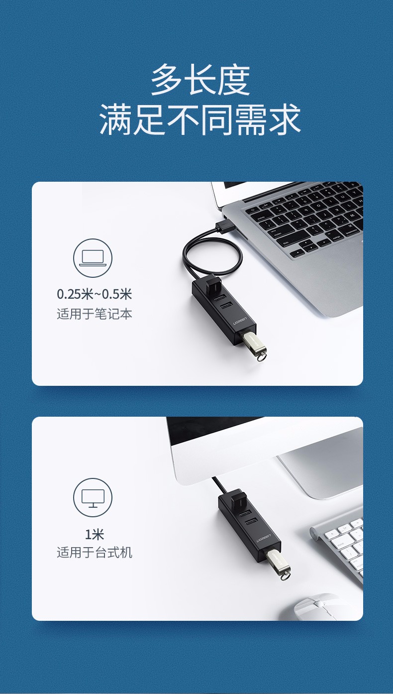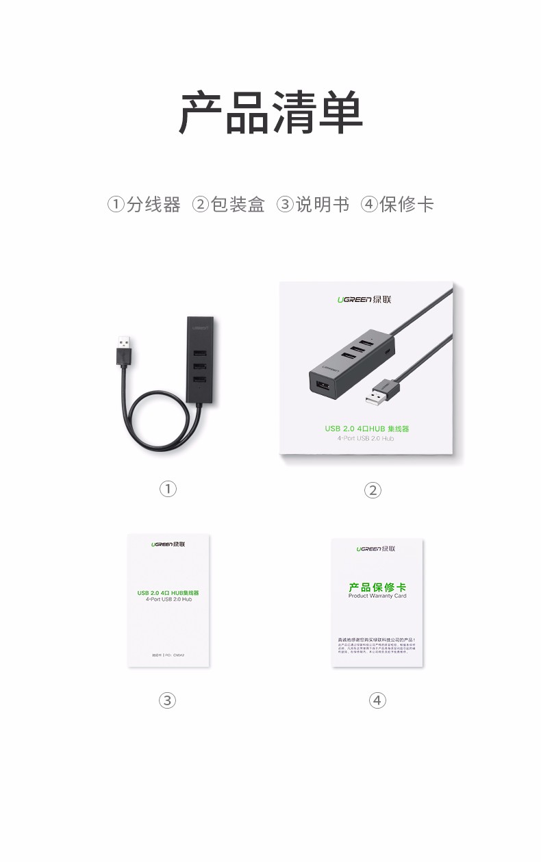 綠聯(lián)分線器 CM342 USB2.0一拖四多功能分線器 0.5米 黑色 單位:個(gè)