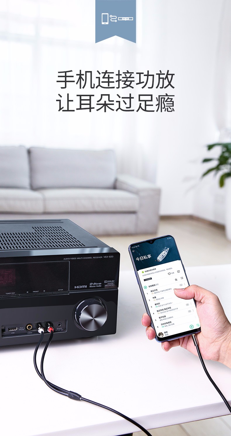 綠聯(lián) AV116 3.5mm音頻線一分二雙蓮花頭2RCA紅白公對(duì)公連接線 2米 黑色 單位:根